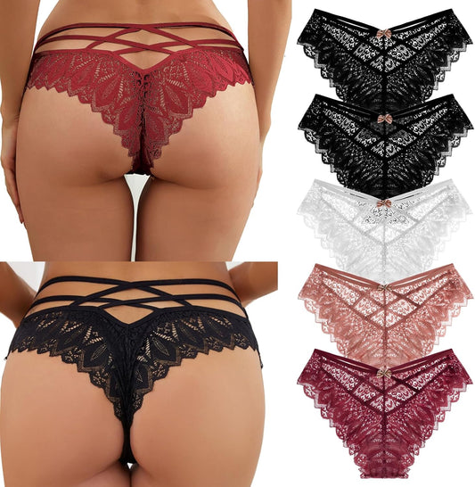 5-Pack Women’s Lace Low-Rise Knickers – Soft Seamless Bikini Briefs | Breathable Cotton Gusset, Everyday Comfort (S-XL)