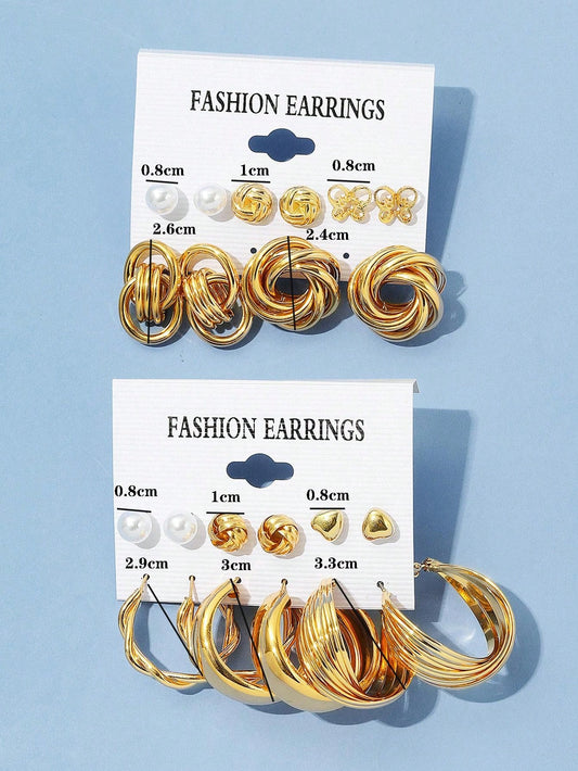 11 Pairs Boho Butterfly C-Shaped Valentine’s Day Faux Pearl & Heart Stud Earrings Sets – Trendy Multi-Element Hypoallergenic Jewelry for Women