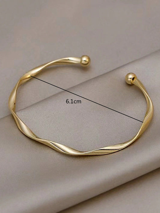 Minimalist Textured Twist Cuff Bracelet for Women - Elegant Dainty Jewelry in Yellow Gold, Silver | Hypoallergenic Everyday Wear, Gift Idea