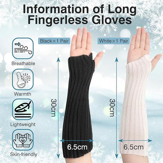 2 Pairs Long Arm Warmers & Sleeves, Fashion Arm Warmers with Thumb Hole for Women, Men