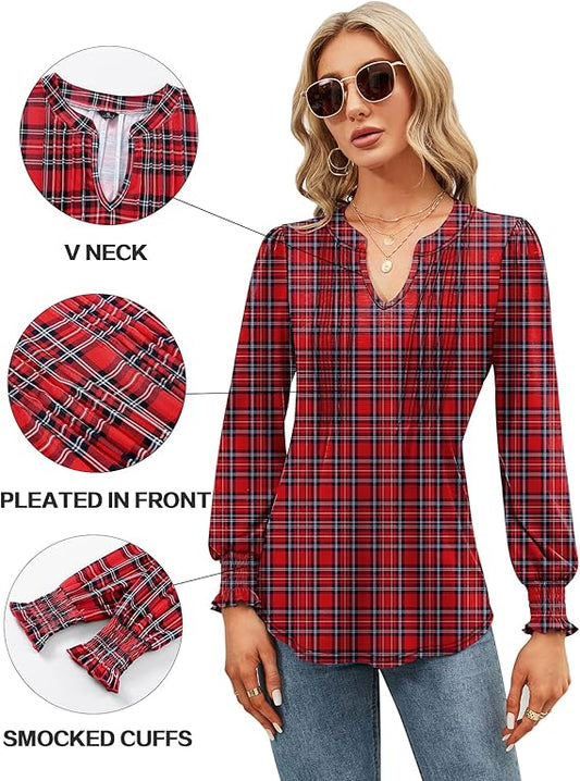 Women's Casual Long Sleeve T-Shirts Crew Neck Pleated Tops Fashion Dressy Tunic Blouses