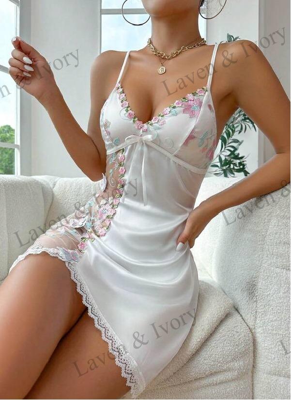 Laven & Ivory Floral Mesh Lace Babydoll Lingerie Slip Dress – Sexy Summer Camisole Nightwear