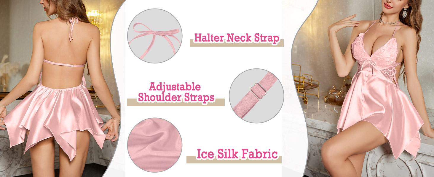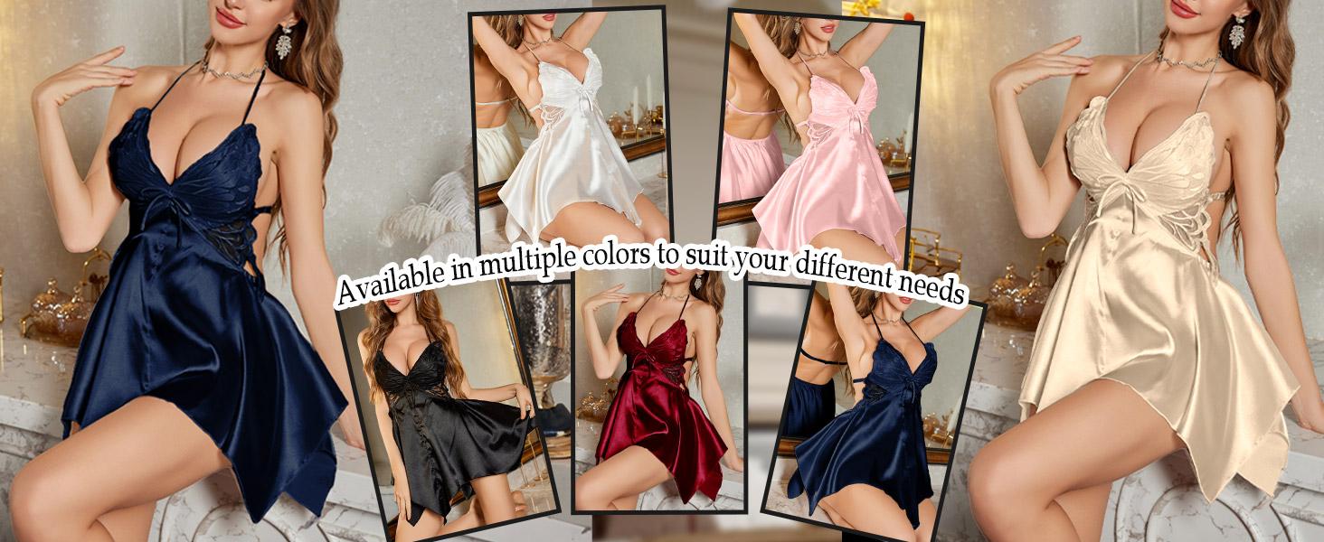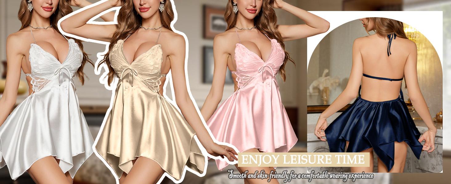 Laven & Ivory Womens Sexy Lingerie Set UK – Backless Satin Loungewear Nightdress with Padded Bra, Luxury Summer Night Dress & Bridal Lingerie Adjustable NightwearCostume